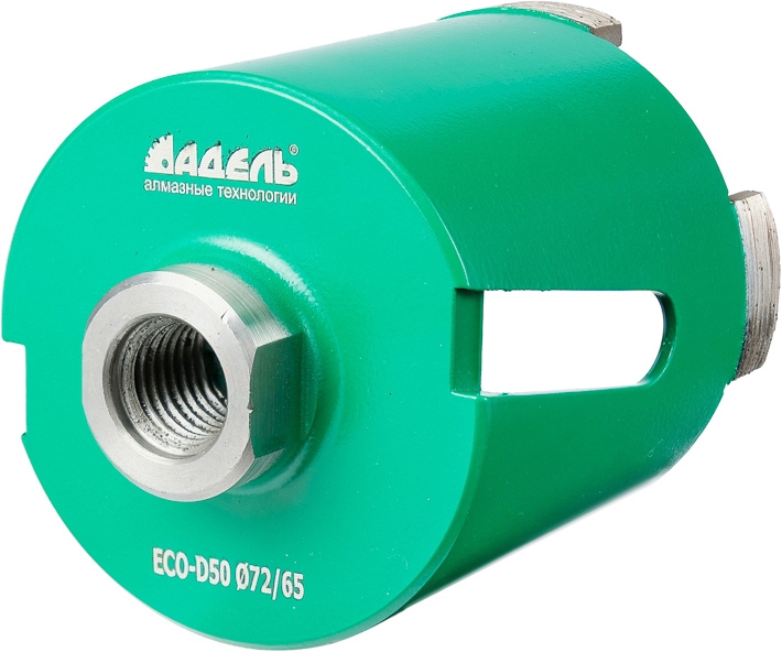 Алмазная коронка для подрозетников по бетону и кирпичу Адель Eco-D50 72/65 мм (Adel Эко-Д50 72/65 мм) предназначена для скоростного сверления неармированного бетона, кирпича, ФБС и других абразивных строительных материалов с использованием ручного электроинструмента без охлаждения водой.