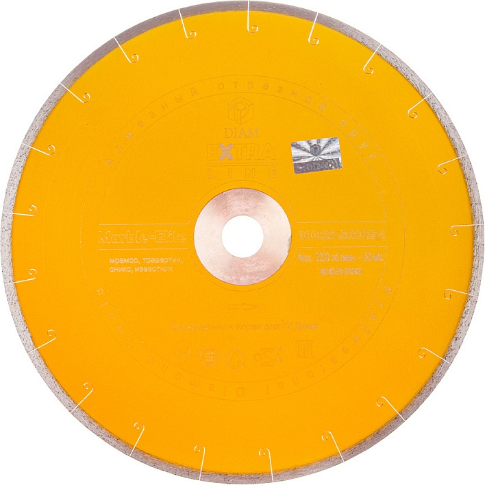 Алмазный отрезной круг Diam Extra Line 1A1R Корона Marble-Elite 300 мм (Диам Экстра Лайн 1А1Р Корона Марбл-Элит 300 мм) – профессиональный алмазный диск специального назначения для высокопроизводительной мокрой резки мрамора, оникса, травертина, известняка на бензорезах, электрических резчиках, переносных плиткорезах, настольных камнерезных станках, стенорезных машинах, швонарезчиках и промышленном оборудовании с подачей воды.