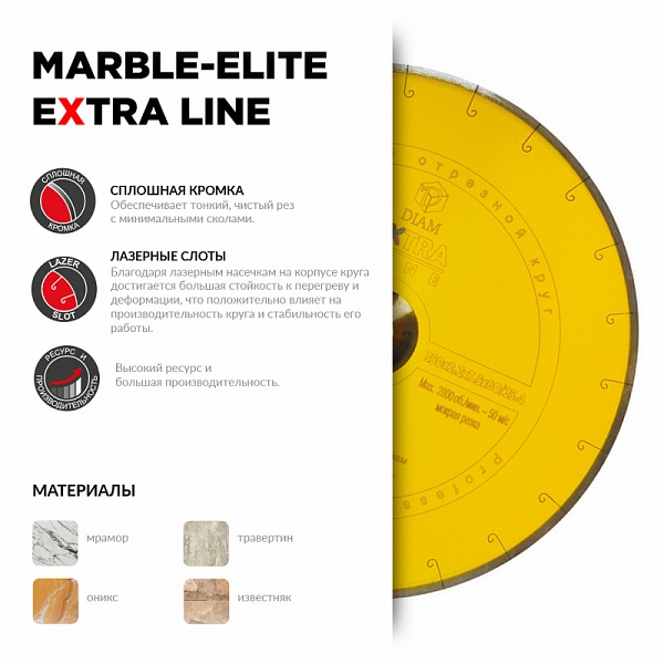 Преимущества алмазного отрезного круга Diam Extra Line 1A1R Корона Marble-Elite 300 мм: