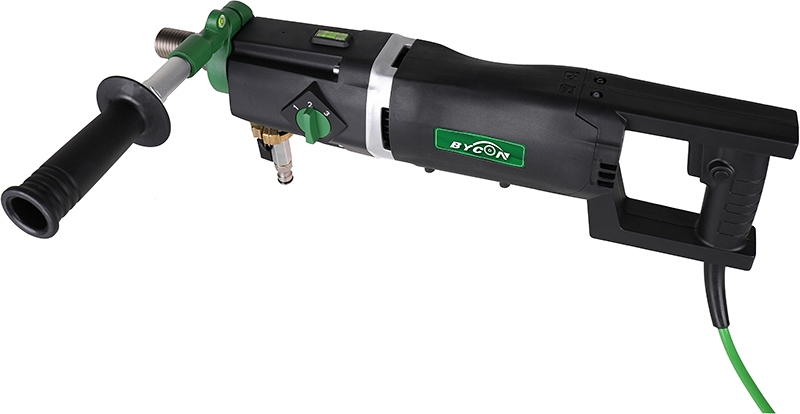 Бесщеточная дрель для алмазного бурения Bycon DMP-202BD (Байкон ДМП-202БД) – легкий портативный двигатель для сухого и мокрого алмазного сверления отверстий Ø 10 – 202 мм в железобетоне и Ø 10 – 252 мм в кирпиче и "легком" бетоне, как с использованием станины, так и "с рук". Ручная алмазная установка для профессионального использования, оснащенная трехскоростным редуктором, предохранительным сцеплением и LED-индикатором перегрузки.