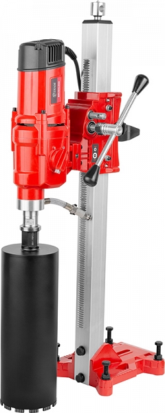 Бесщеточная установка для алмазного бурения Diam EX-300/2N-LC Brushless (Диам ЕХ-300/2Н-ЛЦ Брашлесс) серии Extra Line предназначена для мокрого алмазного сверления отверстий Ø 20 – 260 мм в бетоне, железобетоне и Ø 20 – 300 мм в искусственном и натуральном камне, кирпиче, под углом 90°, с подачей воды, в строительстве, при электромонтажных работах, прокладке сантехнических и вентиляционных труб, отбора проб грунта, высверливании проемов в стенах, а также для частного ремонта.