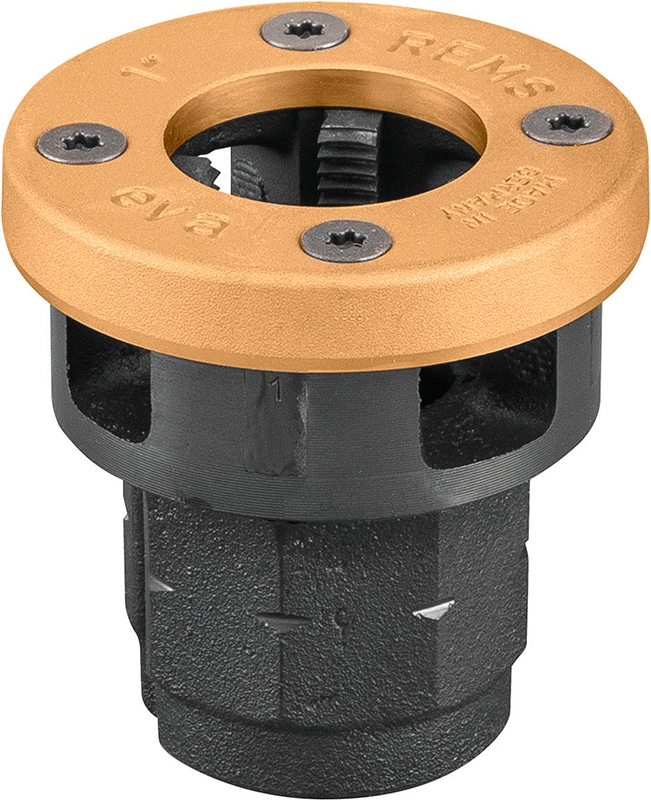 Быстросменная резьбонарезная головка Rems Eva R 1" LH (Ремс Ева Р 1" ЛХ) предназначена для нарезки левой трубной конической резьбы R LH (ISO 7-1, EN 10226 (DIN 2999, BSPT)) на стальных трубах Ø 1" с применением ручных и электрических резьбонарезных трубных клуппов Ева, Амиго, Амиго 2, Амиго 2 Компакт.