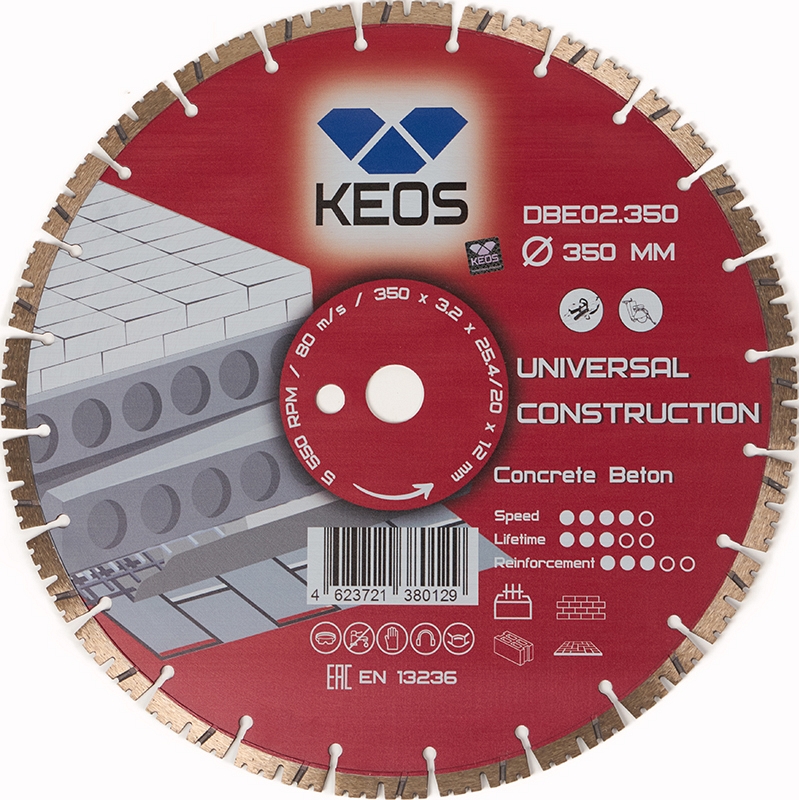 Цена и технические характеристики диска алмазного сегментного Keos Universal Construction 350 мм: