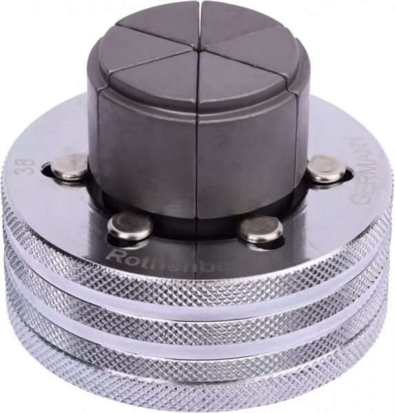 Экспандерная головка Rothenberger Standard 38 мм (1 1/2")×1,6 мм (Ротенбергер Стандарт 38 мм (1 1/2")×1,6 мм) – стандартная клепаная расширительная насадка для расширения мягких и полутвердых медных труб Ø 38 мм (1 1/2"), толщиной стенки до 1,6 мм, для изготовления точных муфтовых соединений в соответствии с нормами DVGW / DIN / ГОСТ и Gas de France.