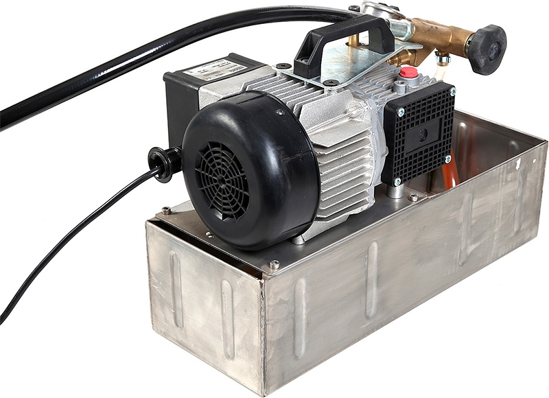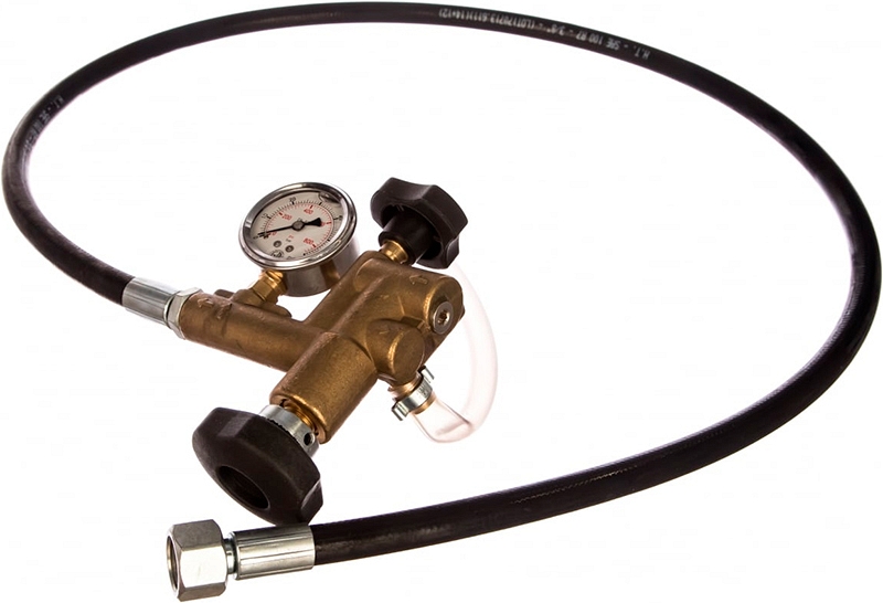 - Быстроразборная система для отсоединения блока управления и глицеринового манометра, которые могут оставаться на испытательном контуре, а опрессовщик со 2-м дополнительным блоком управления может использоваться для опрессовки давлением другого контура
