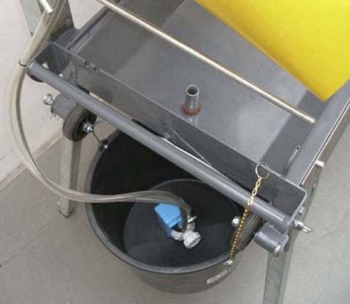 - В качестве основного несущего элемента служит сварная рама со встроенной водяной ванной, оснащенная приваренными по углам квадратными трубами для крепления вставных ножек. Стоит на 4-х ножках, которые просто складываются для транспортировки. Две пары роликов на раме и, соответственно, две на ножках облегчают транспортировку