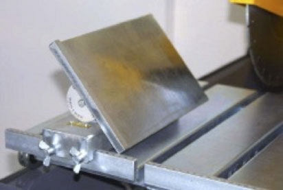 - Легко передвигаемый роликовый стол с боковым упором. Разрезаемая заготовка прикладывается к боковому упору и на роликовом столе передвигается под алмазным диском вперед и назад