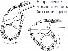 Двойные реверсивные (следовательно, более экономичные) губки обеспечивают работу как с храповым механизмом, в любом направлении без необходимости снятия цепного ключа с трубы: направление можно изменить без снятия цепи
