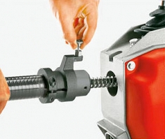 - Работает с прочистными спиралями Ø 22 и 16 мм (без замены зажимных кулачков), а также Ø 8 и 10 мм с помощью специального адаптера с закрытым пластиковым корпусом и цанговым зажимом
