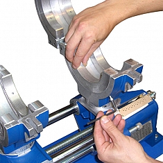 – Держатель для фитинга (узкий хомут) с вкладышами – приспособление для фиксации фитингов, таких как, литые отводы, которые имеют малую площадь поверхности для укрепления зажимов, торцевателя, образования буртика и стыка. Устанавливается вместо стандартного хомута. Используется для изготовления соединений типа: фитинг – фитинг, фитинг – труба