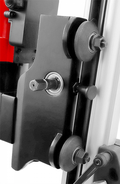 - Двухскоростной редуктор каретки: каретка имеет двухскоростной редуктор подачи алмазной коронки, что позволяет производить бурение разных материалов