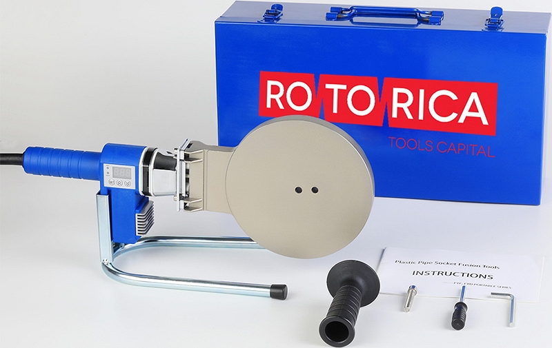 Паяльник для полипропиленовых труб Rotorica Rocket Welder 160 Blue серия Top (Роторика Рокет Велдер 160 Блю серия Топ) с цифровой регулировкой температуры предназначен для раструбной сварки PP-R (ПП-Р), PB (ПБ), PE (ПЭ), PVDF (ПВДФ) труб Ø 16 – 160 мм.