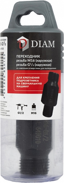 Переходник для подрозетников Diam M16 папа-G1/2" папа (Диам М16 папа-Г1/2" папа) – адаптер для установки коронок для подрозетников с внутренней резьбой М16 на дрели и установки алмазного бурения с внутренней резьбой G1/2".
