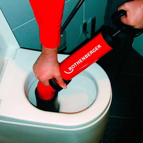 Профессиональный пневматический вантуз Rothenberger Ropump Super Plus (Ротенбергер Ропамп Супер Плюс) с двумя резиновыми адаптерами – ручное устройство для прочистки труб водой под давлением (гидравлическим ударом) предназначено для простого и быстрого устранения засоров в унитазах, раковинах, ванных и т.д.