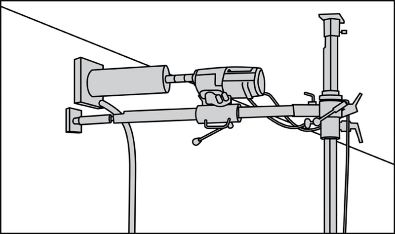 – Во время бурения пола устройство фиксируется с помощью опоры, которая устанавливается напротив потолка