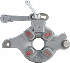 - Быстрооткрывающаяся с ручным отведением резьбонарезных гребенок для нарезания необходимой длины резьбы: резьбонарезные гребенки отводятся вручную поворотом рычага после завершения нарезания резьбы