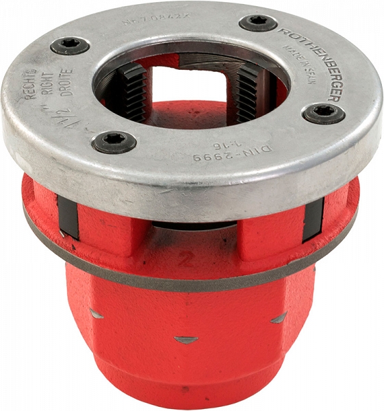 Резьбонарезная головка для клуппов Rothenberger Super Cut BSPT R 1 1/2" (Ротенбергер Супер Кат БСПТ Р 1 1/2") предназначена для нарезки правой конической трубной резьбы BSPT R на трубах Ø 1 1/2", изготовления точных резьбовых соединений в соответствии с DIN EN 10226.