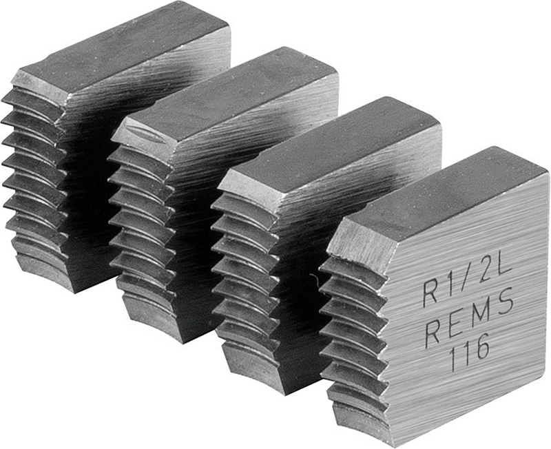Резьбонарезные гребенки Rems R 1/2" LH (Ремс Р 1/2" ЛХ) предназначены для нарезки левой трубной конической резьбы R LH (ISO 7-1, EN 10226 (DIN 2999, BSPT)) на стальных трубах Ø 1/2" с применением ручных и электрических резьбонарезных трубных клуппов Ева, Амиго, Амиго 2, Амиго 2 Компакт.