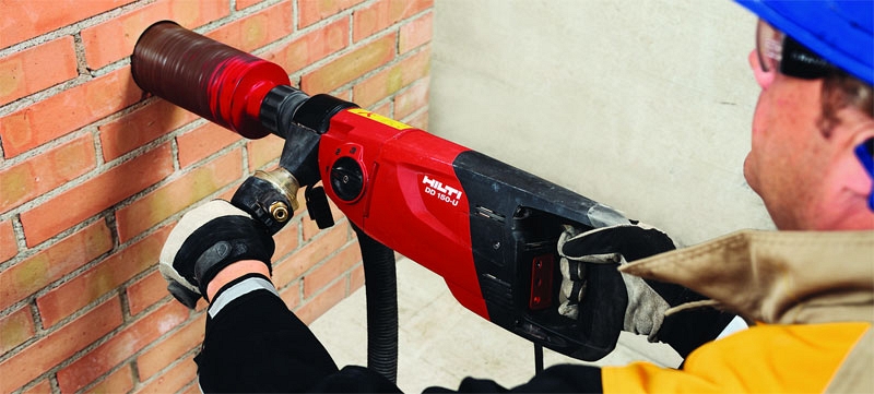 Ручная установка алмазного бурения Hilti DD 150-U (Хилти ДД 150-У) предназначена для сухого и влажного сверления отверстий в бетоне, железобетоне, каменной кладке, кирпиче, камне, минеральных и абразивных материалах Ø 8 – 162 мм. Используется для влажного бурения в бетоне с использованием систем бурения на станине для установки труб, кабельных лотков и каналов, а также для монтажа поручней и ограждений; ручного влажного бурения для установки анкеров большого диаметра и арматурных стержней; ручного сухого бурения в каменной кладке для установки труб, используемых в системах водоснабжения, отопления и кондиционирования воздуха, а также для установки дымоходов и печей.
