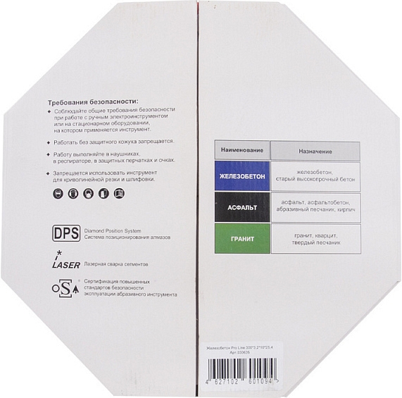 Цена и технические характеристики сегментного алмазного круга Diam Pro Line 1A1RSS Железобетон 300 мм: