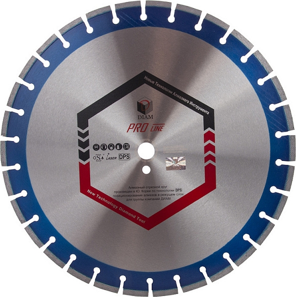 Сегментный алмазный круг Diam Pro Line 1A1RSS Железобетон 450 мм (Диам Про Лайн 1А1РСС Железобетон 450 мм) – профессиональный алмазный отрезной диск с лазерной сваркой сегментов, произведенный по технологии DPS – позиционирования алмазов в режущем слое, для сухой и мокрой резки железобетона, старого высокопрочного бетона, огнеупоров на камнерезных станках, стенорезных машинах, швонарезчиках, как с охлаждением, так и без.