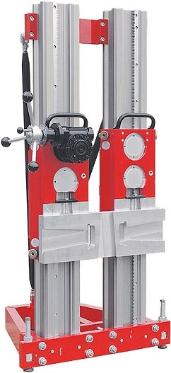 Специальная сверлильная станина Dr. Schulze B-800 (Доктор Шульце Б-800) – универсальная и особо надежная керносверлильная стойка с двумя направляющими колоннами для гидравлических моторов для бурения отвеpстий в бетоне, железобетоне, кирпиче, камне Ø до 800 мм под углом -90° ... +45°.