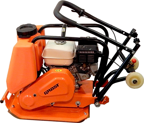 Виброплита бензиновая Grost VH-60 (Грост ВХ-60) – легкая прямоходная вибрационная плита поступательного движения с оригинальным бензиновым двигателем Honda GX160 для уплотнения несвязных грунтов, асфальта, дорожек на даче, мелких работ на дачном участке, укладки тротуарной плитки, в ландшафтном дизайне, ямочном ремонте, узких траншеях и пазухах, благодаря узкому основанию и небольшой массе.