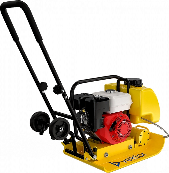 Виброплита бензиновая Vektor VPG-90E (Вектор ВПГ-90Е) с бензиновым двигателем Honda GX160 и баком для воды предназначена для проведения дорожно-строительных работ при уплотнении различных сыпучих строительных материалов, грунтов, асфальта.