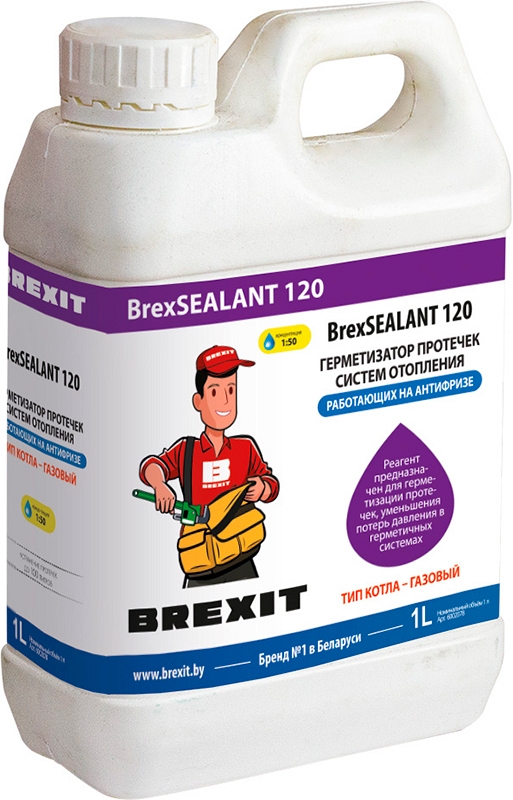 Модель снята с производства! Жидкий герметик для устранения течей в системах отопления на антифризе с газовыми котлами Brexit BrexSealant 120 (Брекзит БрекзСиалант 120) – профессиональное средство, жидкий самоуплотняющийся герметик для устранения микротрещин в системах с газовыми котлами, предназначенное для герметизации протечек, связанных с потерями давления в герметичных системах, работающих на антифризе. Применяется для ремонта систем отопления, в которых затруднительно применение средств наружного действия.